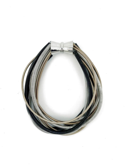 Piano Wire Bracelet Multi Sleeved Silver, Gold and Slate