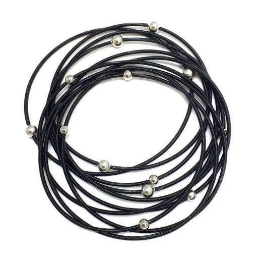 Piano Wire Bracelet Beaded and Textured in Silver, Slate, Black and Gold
