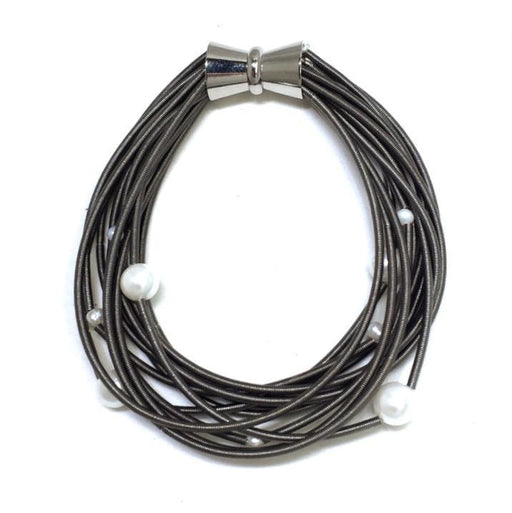 Piano Wire Bracelet in Slate with Freshwater Pearls