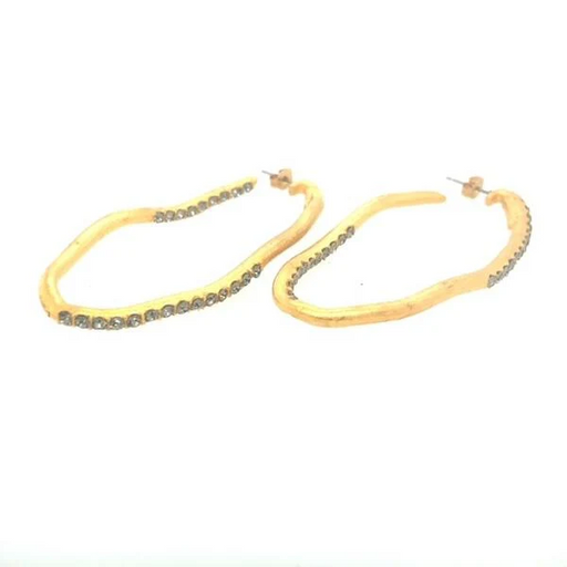 Oval Squiggle Half Crystal Hoop Earrings in Gold by Rebel Designs