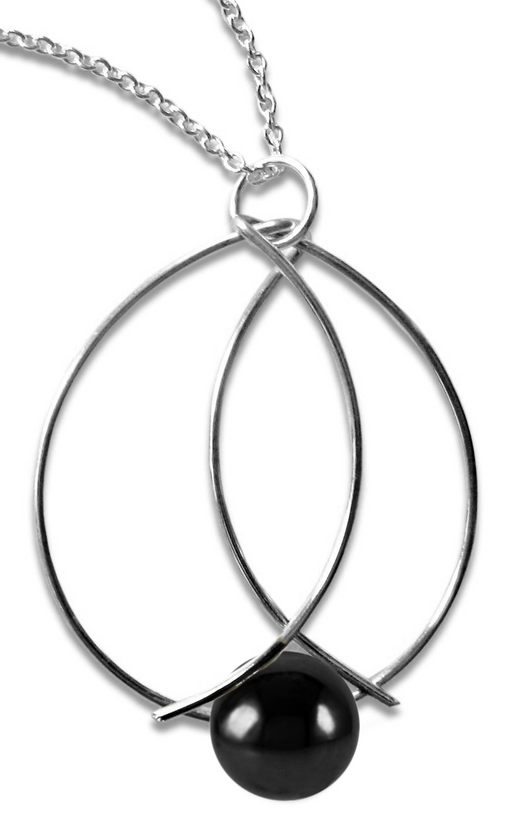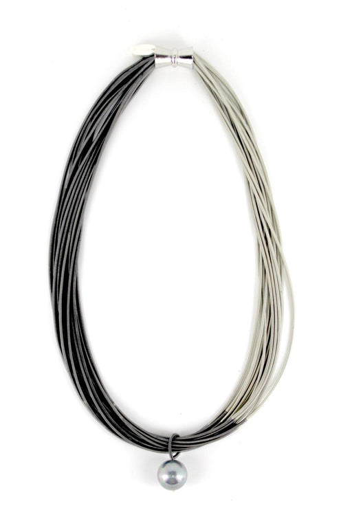 Piano Wire Necklace 2 Tone Slate and Silver with Gray Pearl