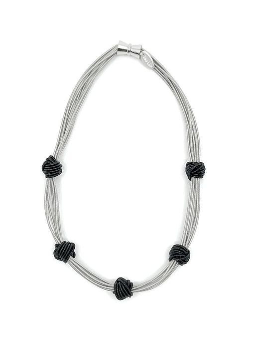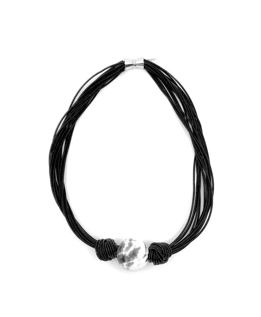 View full detailsPiano Wire Black Multi Strand Necklace with Large Black and White Bead