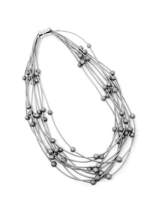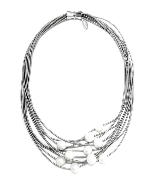 Piano Wire Necklace 10 Strands Silver with White Freshwater Pearls