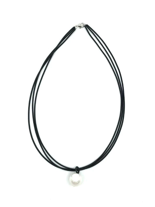 Piano Wire Necklace 3 Strand Black with White Pearl