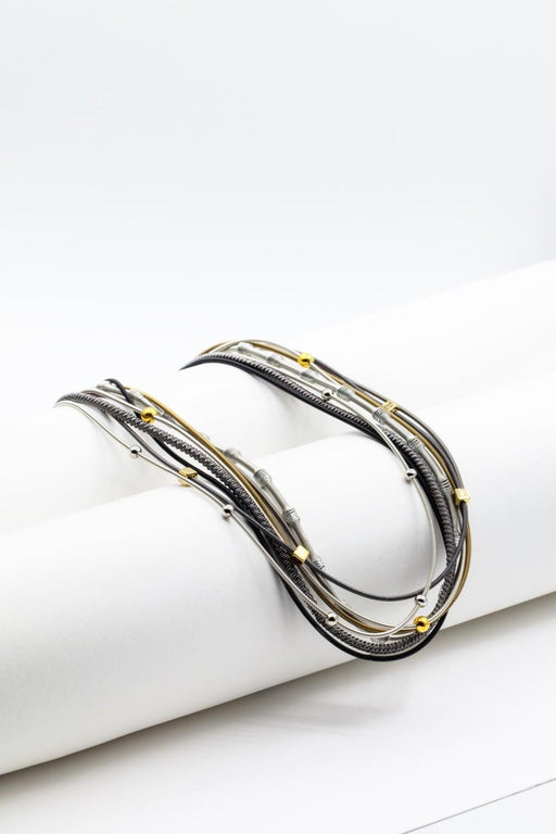 Piano Wire Necklace Beaded in Silver, Gold and Black