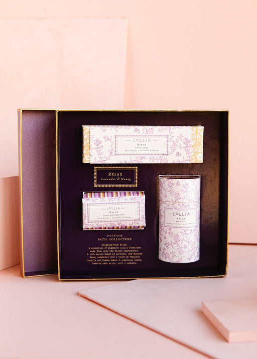 Moisture-rich bliss. The Relax Signature Bath Collection includes our signature Lollia favorites made from the finest ingredients. Indulge in a ric...