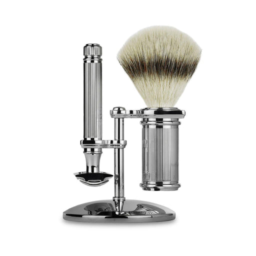 Our three-piece chrome shaving set, made in England, comes with a double-edge razor that'll make you say good riddance to disposable cartridge blad...