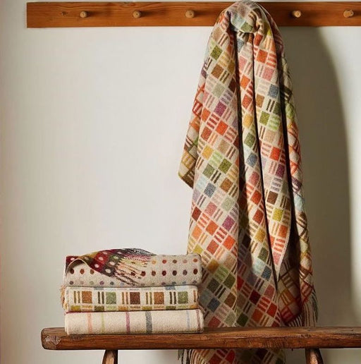View full detailsMerino Lambswool Throw Blanket - Ribbon Multi-Beige - Made in England