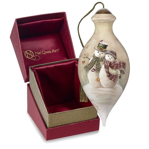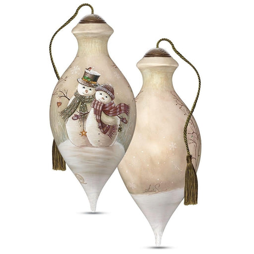 Bundled for the winter holiday season in cozy scarves, top hats, and love, this darling snowman couple on this Christmas ornament adds a festive to...