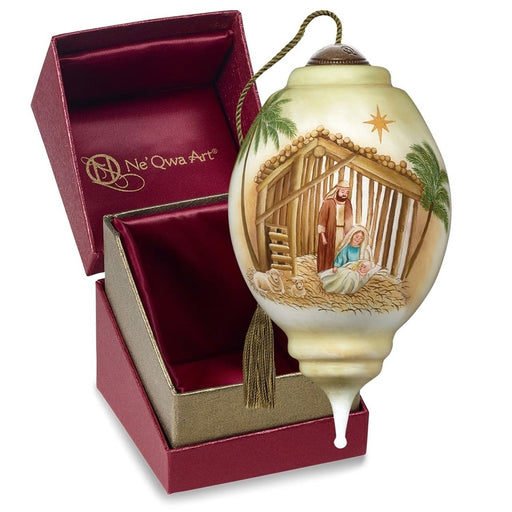 The Holy Family rests in a humble manger scene on this exquisite Nativity Christmas ornament, celebrating that most holy night when baby Jesus gave...