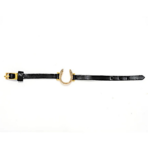 Rebel skinny pave horseshoe leather bracelet. 18K gold finish with black diamond crystals. Adjustable buckle closure. Genuine Italian vintage black...