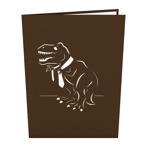 The brown front cover of the T-Rez Dad card features an illustration of a Tyrannosaurus Rex preparing to tie his necktie. Once opened the card reve...
