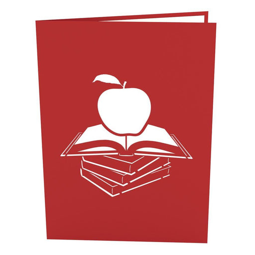The rich red cover of this wonderful pop-up card features a laser-cut illustration of a delicious apple set upon an open book. Once opened the card...