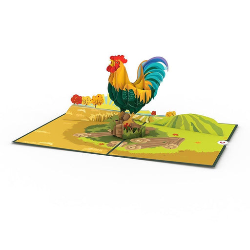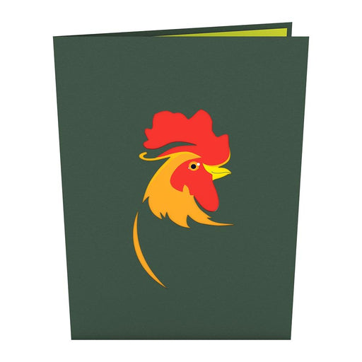 A cheeky, red rooster is laser cut onto the cover of this forest green card. Inside, our 3D Rooster is vibrantly colored marigold yellow, turquoise...