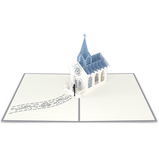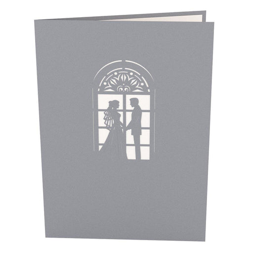 The silver cover of this wedding pop-up card shows a glimpse into the big moment before the bride and groom tie the knot. Open the Wedding Chapel C...