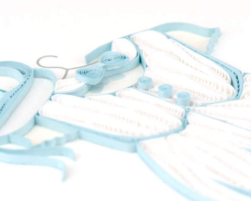 The bluebird, as seen on this quilled greeting card, is known to be symbolic of both happiness and good luck. Paper strips in various shades of ora...