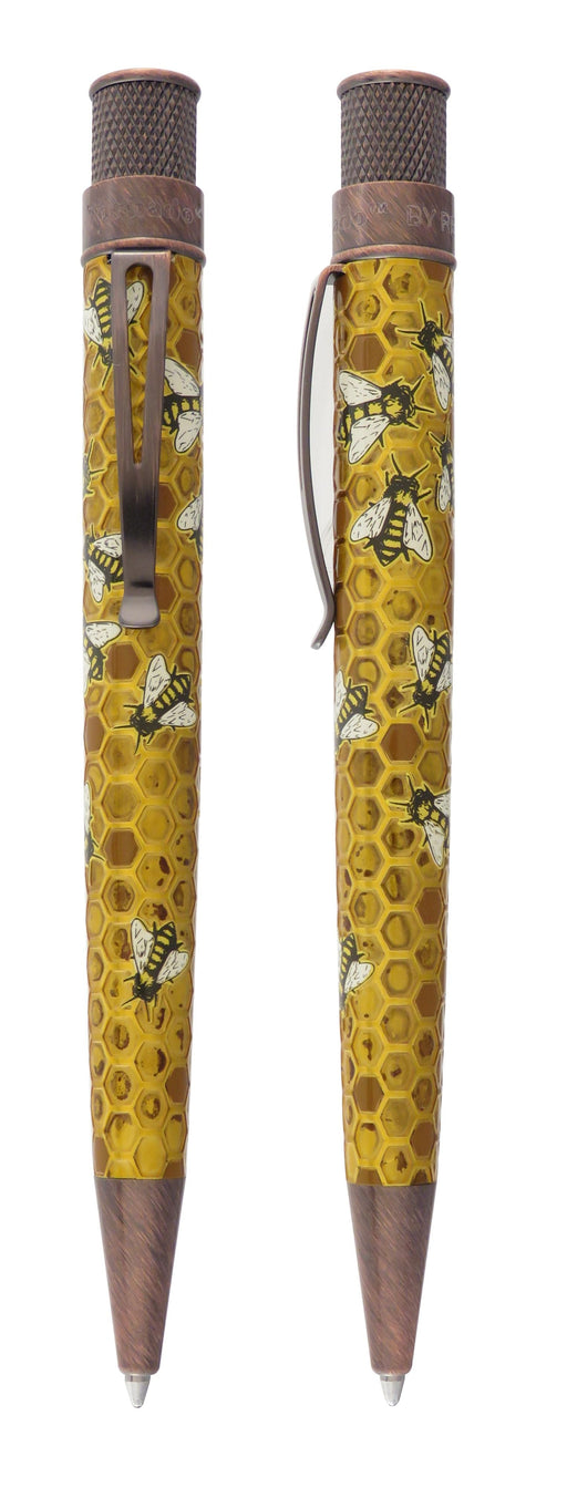 This Retro 51 Tornado rollerball pen features an acid-etched honeycomb texture with printed honey bees. It has antique copper trim. Each twist-acti...
