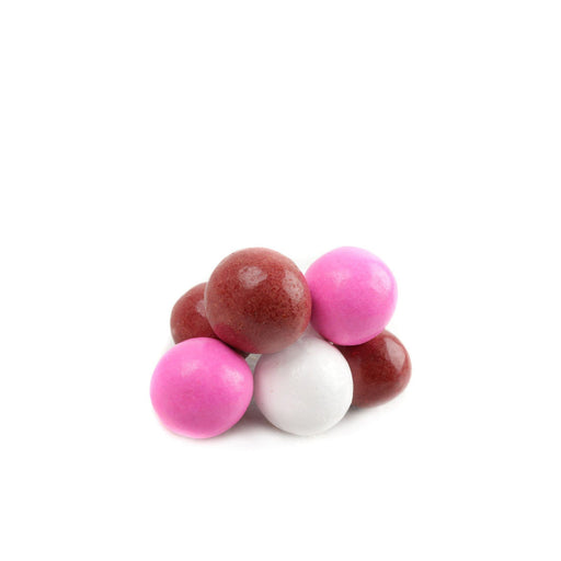 Miniature dark chocolate malted balls robed in white, red or pink candy shell. Just a litte bit of a delicious treat to add to your expression of l...