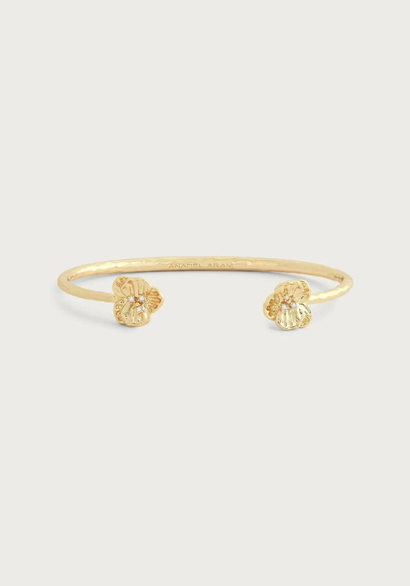 Sculpted from 18k gold dipped brass adorned with sparkling crystals, the hinged bangle closes with a secure hidden clasp worthy of fine jewelry. 18...