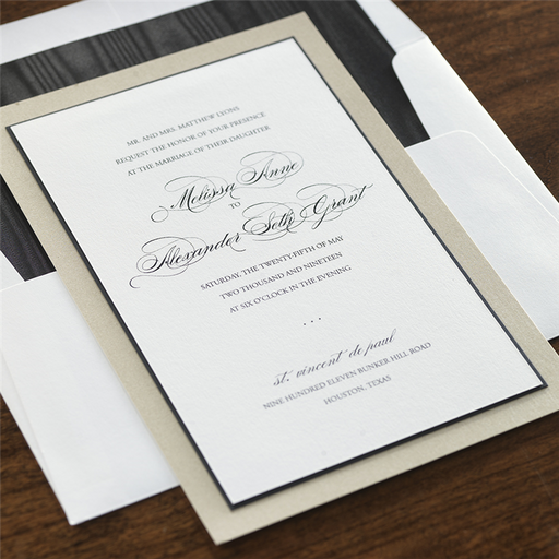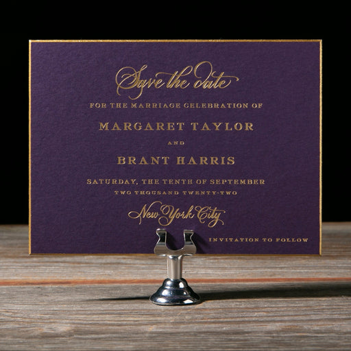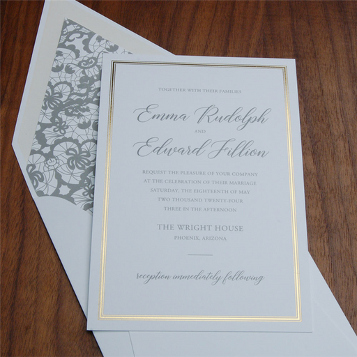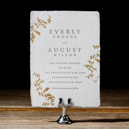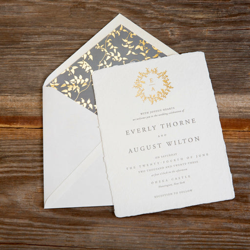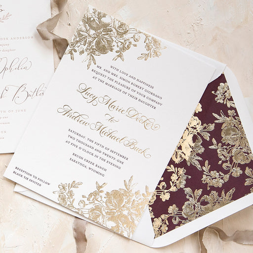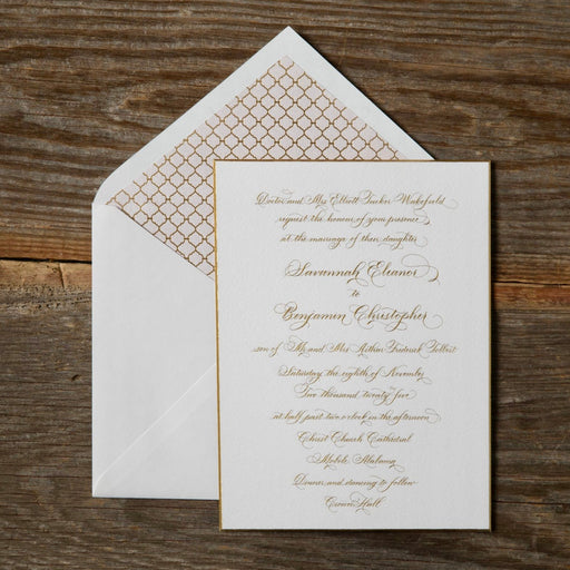 by Designers' Fine Press Terraza features a brand-new die cut shape and a beautiful combination of Bright Gold Foil and Shadow Letterpress. The ro...