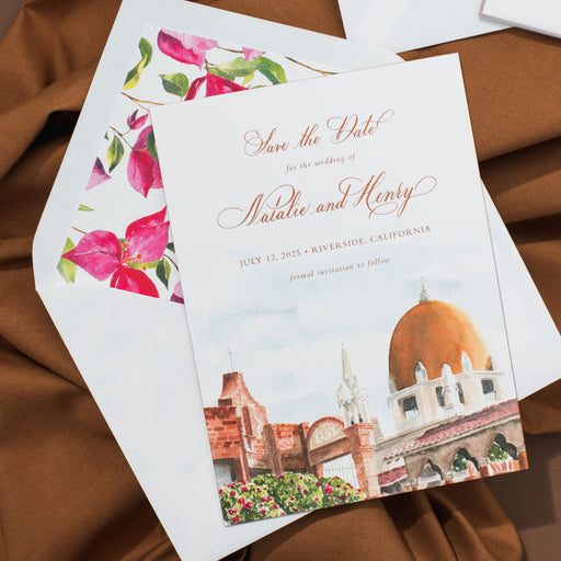 by Lindsy Talarico for Bella FiguraStyled Photo credits: Carina Skrobecki The Claudia Save the Date is an understatedly elegant proposal for a seas...