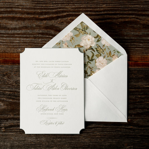 by Katie Magee for Bella FiguraStyled photo credits: Carina Skrobecki and Cozbi Jean The Fairefolk wedding invitation is an object of floral fantas...
