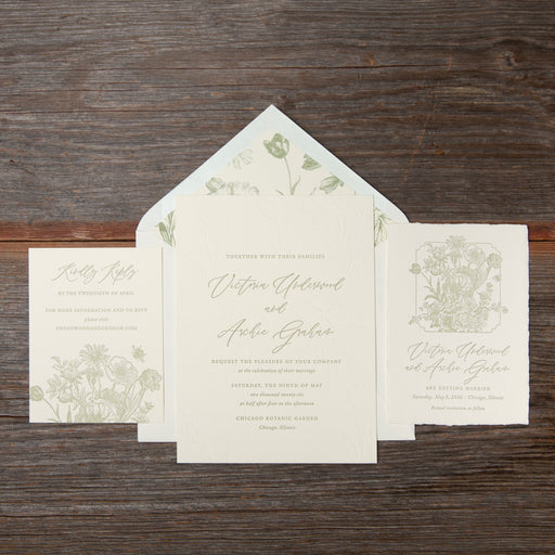 by Designers' Fine Press The Georgian Suite with its soft torn edges and lacy letterpress floral border motif is romantic with old world charm. Pr...