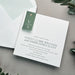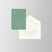 Menu Card: Emerald 100# Card with Vellum 48# Tag.