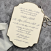 An elegant yet fluid script invites guests to a wedding that will not be forgotten.  The curving Frieze diecut on this Royalty sized triple weight card has a deeply angled gold bevel to frame its edges and imparts a formal air without a hint of severity.