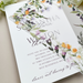 Vibrant watercolors on a translucent vellum overlay transform the Gouache Suite into a bright and cheerful invitation to a modern celebration.