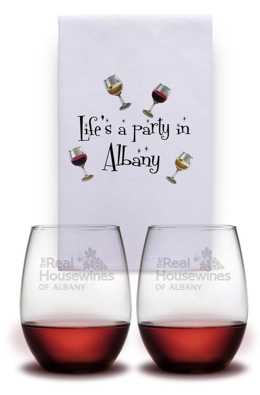 These handcrafted wine glasses and towel are a clever twist for someone who loves to entertain. A pair of stemless wine glasses suitable for a cas...