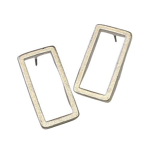 Petite and simple, these silver plated open rectangle stud earrings feature a surgical steel post. Handmade in the USA by artist Sue Rosengard.