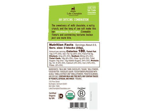 View full detailsLake Champlain Chocolates Milk Chocolate Almonds & Sea Salt Bar