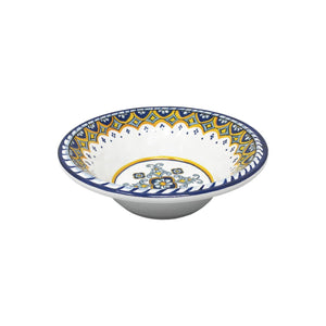 Our Sorrento cereal bowl inspired by small village artisans in Italy has a beautifully rich color palette of deep blue and golden yellow paired with a unique and beautiful artisinal design. With its exceptional weight and luxurious textured surface treatment it has the appearance of real ceramic. Not just for cereal, it multi tasks well for soups and other "bowl required" culinary needs.
