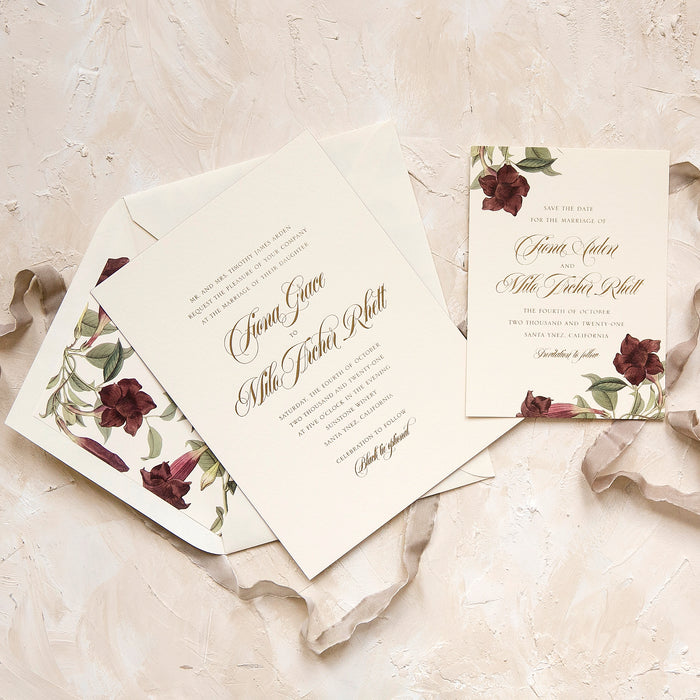 This invitation suite is classic at its core with sophisticated touches of color and texture.
