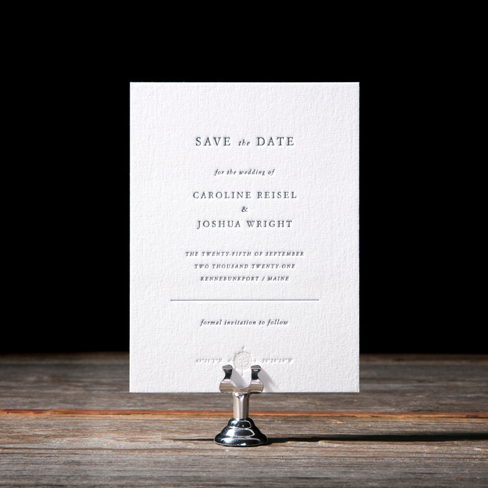 The Arundel Save the Date is crisp and clean and perfect the couple looking for understated elegance.  The whispery nautical touches demonstrate that a theme can be employed with subtlety and need not overwhelm the senses.
