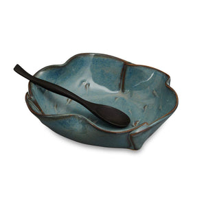This piece includes a bamboo spoon and recipe card. This handmade pottery is oven, dishwasher and microwave proof as well as food and drink safe.