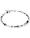 Hematite, Cat-Eye and glass cubes enhanced by steel plates, silver plated and exclusive Swarovski crystal squares rondels, alternating with glass tubes.