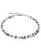 18" adjustable necklace made of Cat-Eye, Polaris, and glass cubes enhanced by steel plates, plated with Rhodium and exclusive Swarovski crystal squares rondels, alternating with glass tubes filled with silver.