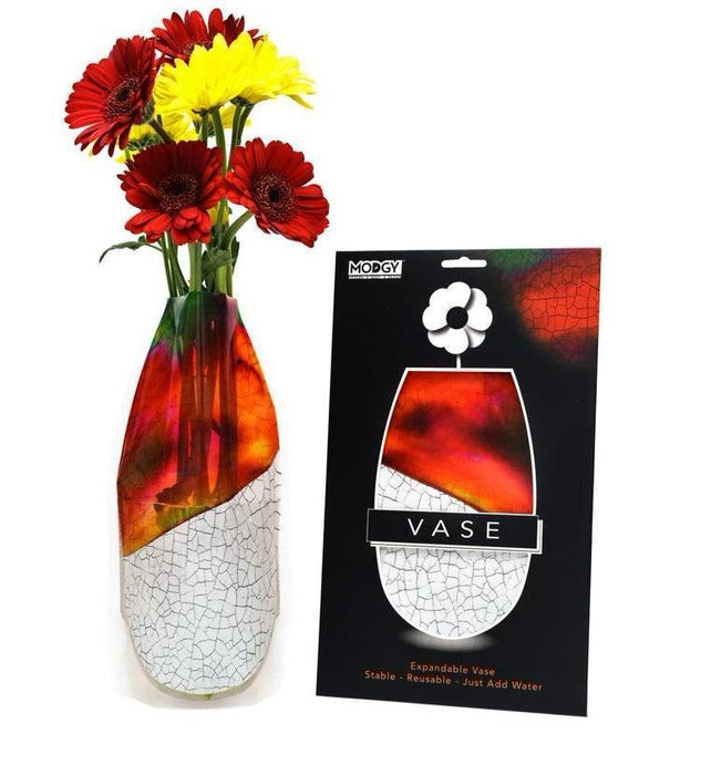 Modgy Expandable flower vases do everything a glass vase does except collect dust, chip or break. These BPA free plastic vases are durable and stable enough to hold a flower bouquet and are ideal for events, weddings, and any table top. Modgy vases are collapsible and economical, making it easy to keep a variety of colors and patterns tucked away for any occasion. To clean, rinse with water and dish soap. Leave open to dry, store flat.