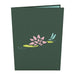 The Dragonfly pop up features a dark green cover laser-cut with a light green lily pad topped with a beautiful pink flower and baby blue dragonfly buzzing above.