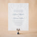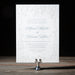 The Elatus wedding invitation makes use of a pattern of floral sprigs in blind embossed relief to create a lace-like frame to classically styled invitation text.