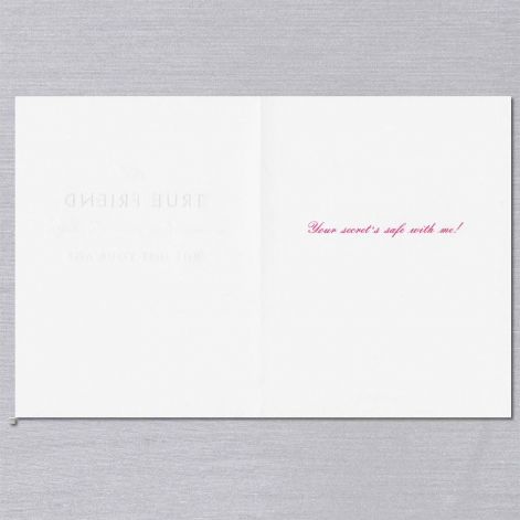 Truer words were never spoken than those found on the front of our hand engraved pearl white card: "A true friend remembers your birthday but not your age." Expressed in platinum and raspberry, the sentiment continues inside with "Your secret's safe with me!" A matching pearl white envelope with a watermelon liner accompanies. Cards are sold individually and include a matching envelope.