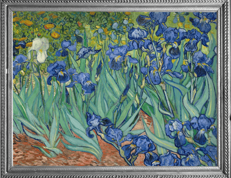 Vincent van Gogh original oil painting Irises is in the Collection of The J. Paul Getty Museum, Los Angeles, CA.