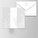 Reply Card: White Letterpress (300gsm) Card with matching White 4bar pointed flap Envelope.
