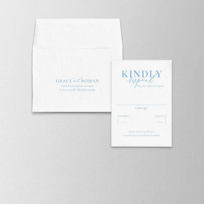 Reply Card and Envelope: Slate Blue Thermography Ink