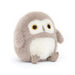 Squat and fluffy, with mussed truffle fur, Barn Owling is almost as round as an egg! This charismatic owl chick has a buttercream belly, gold eye embroidery and soft suedette claws. Flapping their wee wings, they can't wait to fledge!