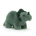 You always know when Fossilly Triceratops is coming - the ground starts to wibble and wobble! This snuggly pal has soft teal fur, three squidgy snoot spikes and a very fine frill, not to mention a lovely long tail!