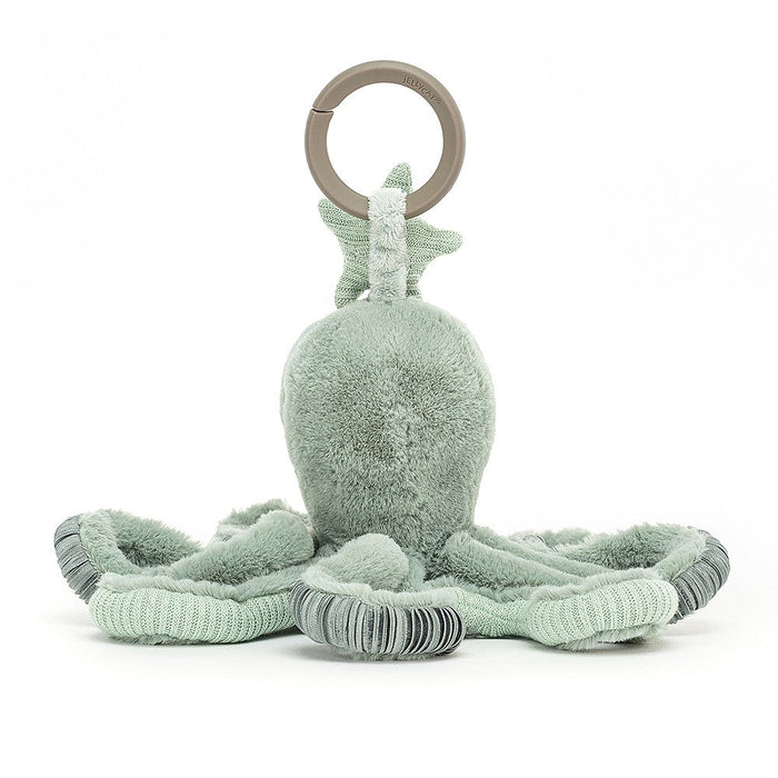 Octopuses are bright and curious, and the Odyssey Octopus Activity Toy lets tots investigate too! This seafoam sweetheart has rattles, crinkles, springy legs with cordy curls, a great big smile, a sturdy clip and even a starfish crown that squeaks! Octastic!