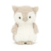 A sweet companion for sleepyheads, Wee Owl is a tumble of cream and grey tussles. Neat and petite, this shy little bird has fine flappy wings and a suedey pebble beak. With teeny tufts, squashy-soft claws and a roundy tum, Wee Owl is dreamy to cuddle.